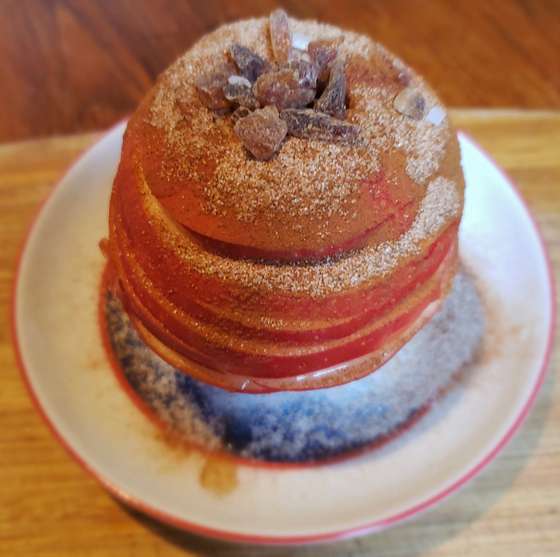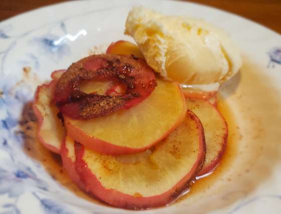 Tip: In a rush? You can make the dish in the microwave (one apple at a time). Make sure the apple is placed in a bowl. Otherwise the liquid from the apply would run off the plate. Microwave for 5 minutes and serve while hot.