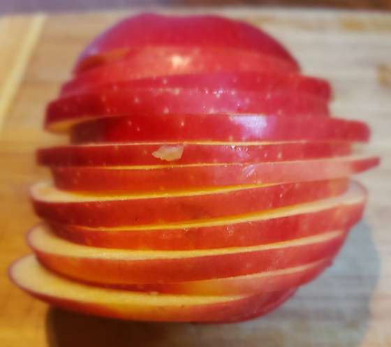 For this recipe I prefer tart apples – just core the apples and thinly slice them.